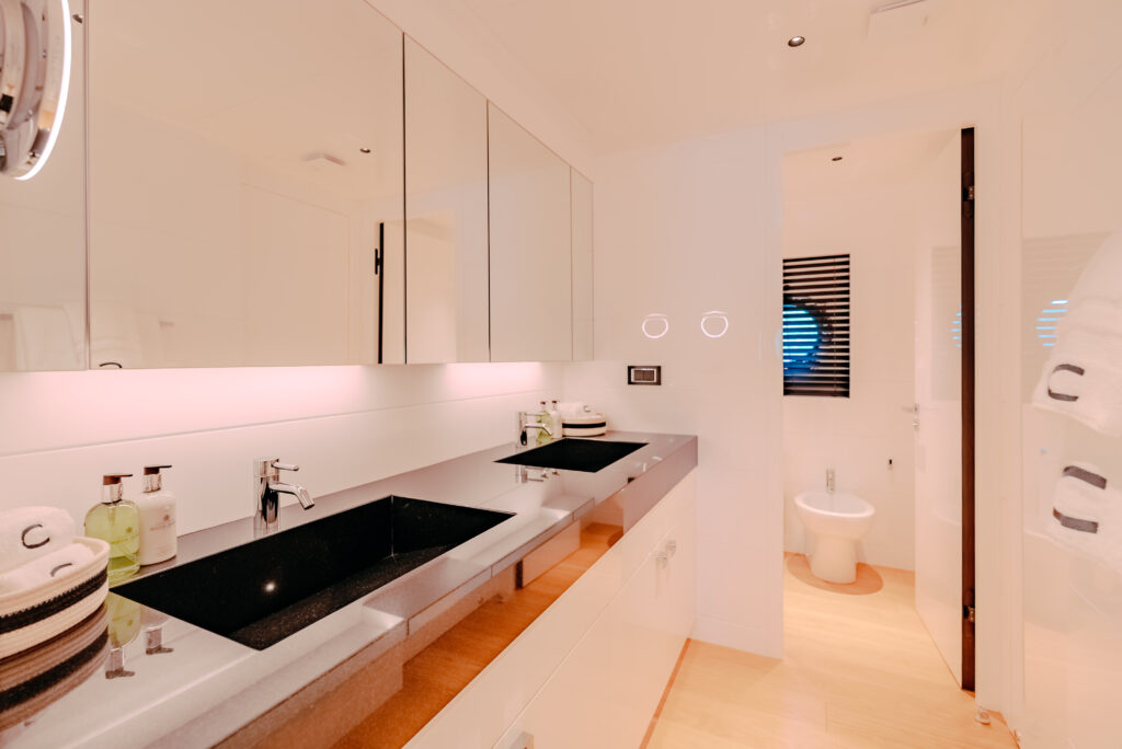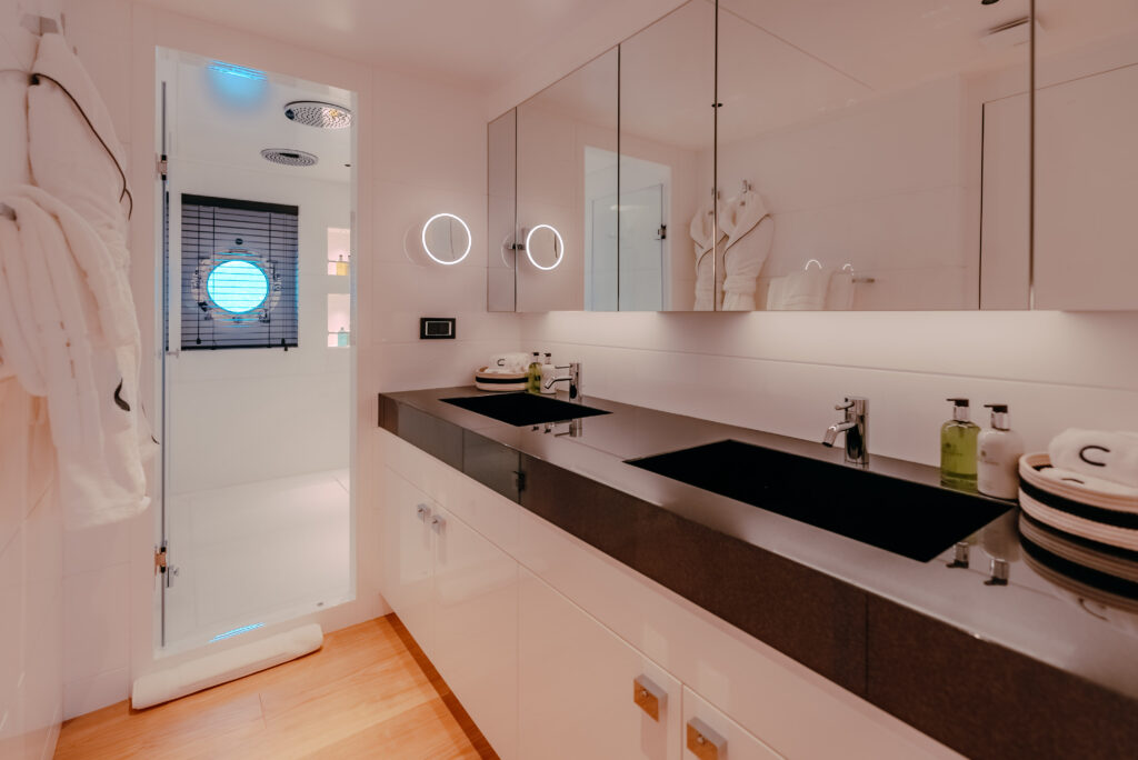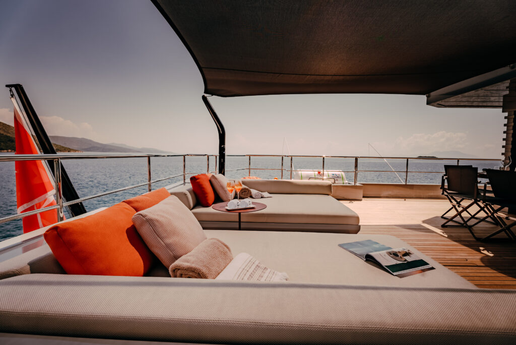 Carmen offers five spacious, beautifully appointed cabins that accommodate up to 10 guests in absolute comfort. Each cabin is thoughtfully designed to ensure relaxation and tranquility, providing the perfect retreat after a day of exploration. The yacht’s expansive open-air spaces also enhance the sense of freedom, offering unparalleled opportunities for relaxation and entertainment.