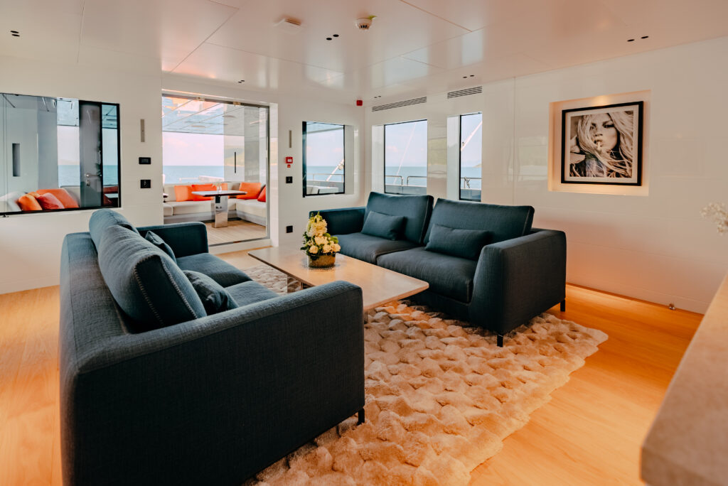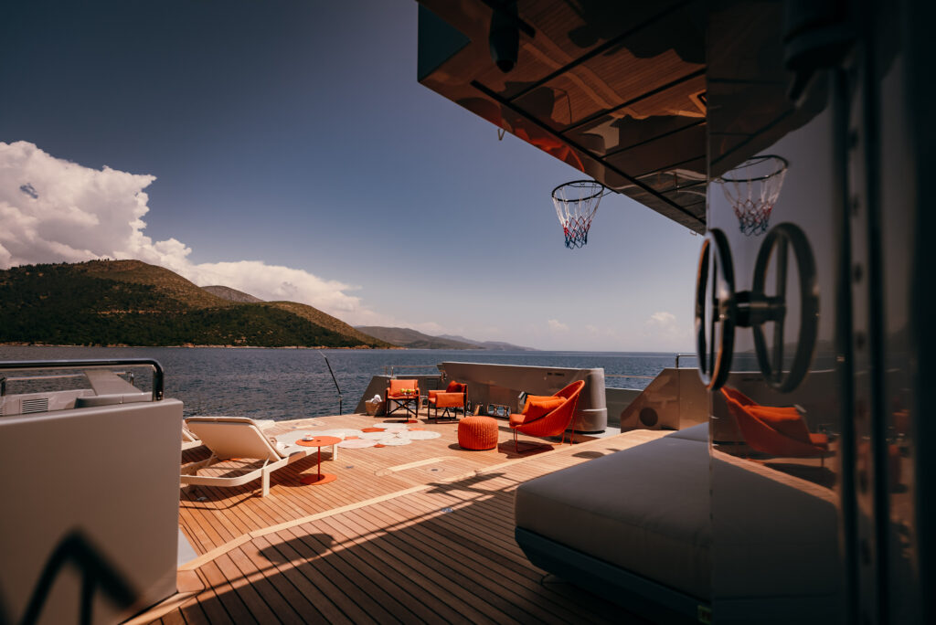 The yacht’s decks are a haven for sports enthusiasts, with activities such as basketball and table tennis available for guests to enjoy. The foredeck features a Jacuzzi, offering the perfect spot to unwind and soak in the stunning surroundings in true luxury. Carmen strikes the perfect balance between adventure and sophistication, ensuring an unforgettable charter experience.