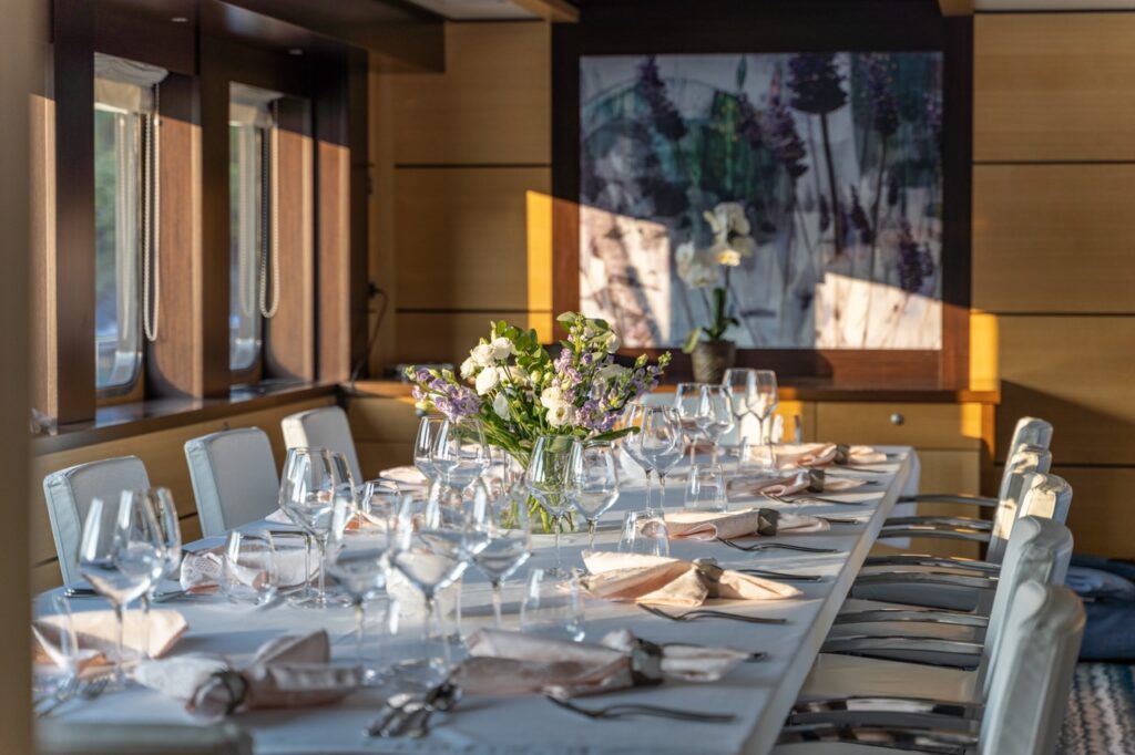For those who love to stay active or explore the water, Navilux is fully equipped with jet-skis, SeaBobs, paddleboards, wakeboards, kayaks, snorkeling gear, and more. Whether it’s a serene paddle at sunset or high-speed fun on the water, there’s something for every mood. A dedicated crew of up to eight ensures seamless service throughout your charter, including a skilled chef who crafts exquisite meals tailored to guest preferences, using only the freshest local ingredients.
