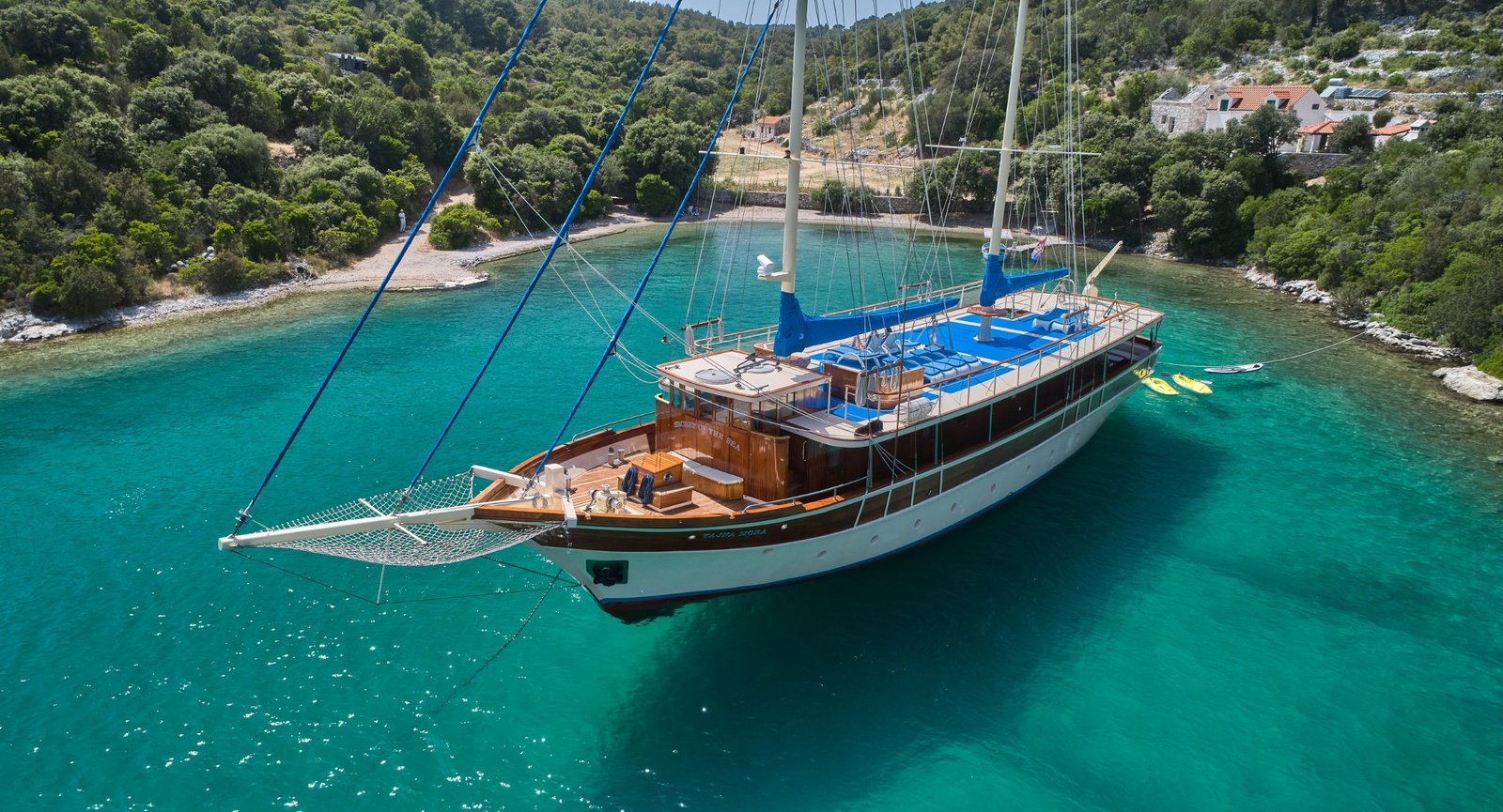 Tajna Mora also offers a wide selection of onboard activities, with an impressive range of water sports equipment to enhance your journey. Elegant, spacious, and purpose-built for unforgettable group charters, she delivers every luxury expected from a yacht in her class.