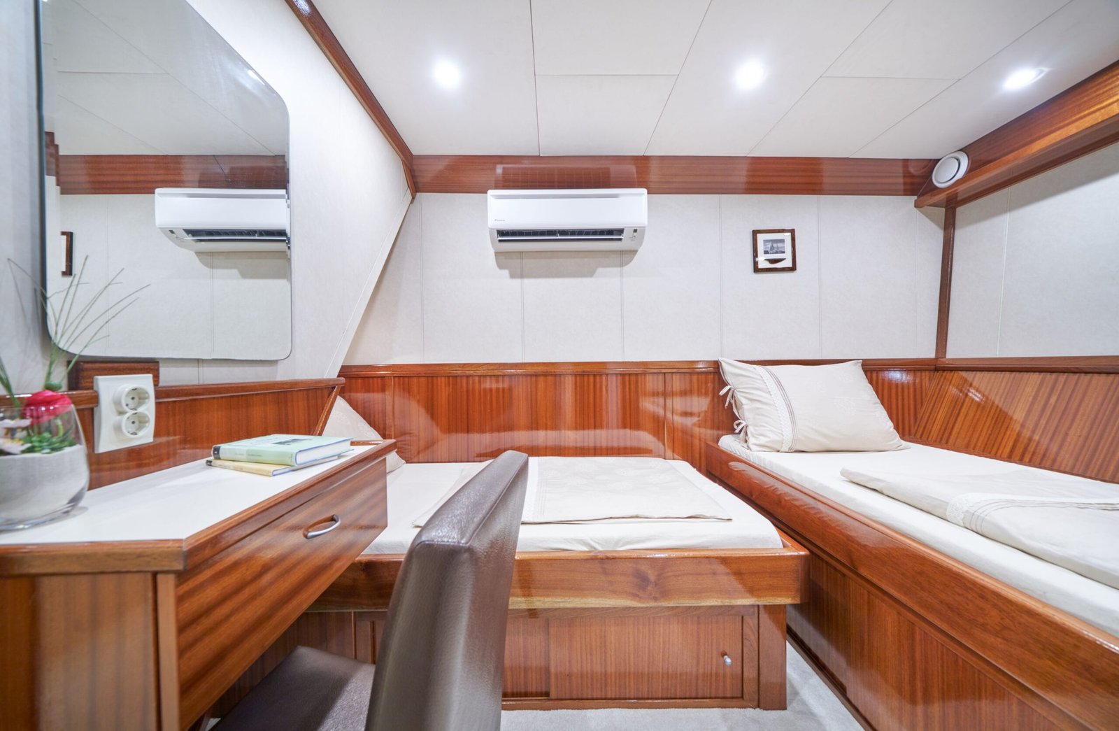 A standout feature is her extended swimming platform, which allows for effortless access to the sea — perfect for swimming, snorkeling, or launching water toys.